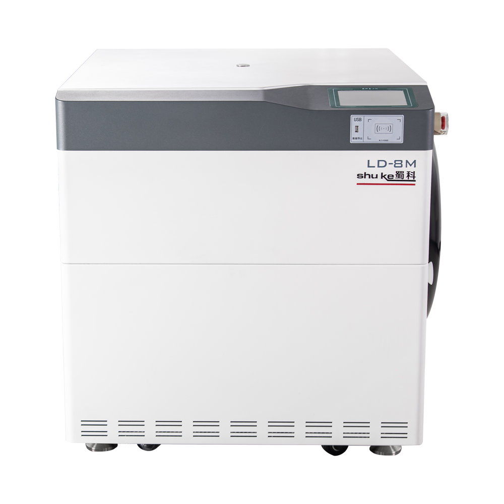 LD-8M — напольная охлаждаемая центрифуга большой вместимости с максимальной загрузкой 6×2400 мл. Позволяет одновременно центрифугировать 12 трансфузионных пакетов или 384 гематологические пробирки. Оснащена ЖК-сенсорным экраном для просмотра и настройки параметров. Операционная система SHUKE 3.0 обеспечивает расширенный функционал.