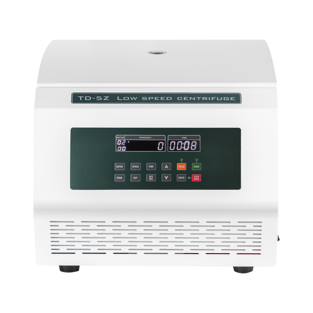 TD-5Z — это настольная центрифуга общего назначения. Она работает с пробирками объемом 15 мл, 50 мл и 100 мл, при этом за один раз можно центрифугировать до 32 пробирок по 15 мл. Центрифуга оснащена качающимся ротором, специально предназначенным для 48 вакуумных пробирок для забора крови диаметром 13 мм. Также имеется ротор для микропланшетов на 96 лунок.